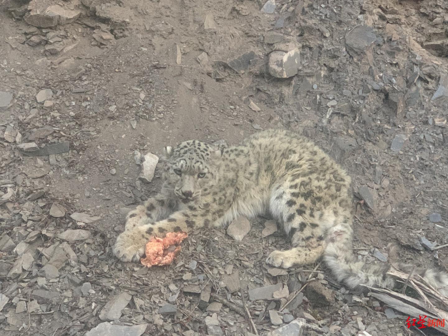 接到报警后,尼玛松保带着民警和哈秀乡政府工作人员一同赶到现场。他们发现,雪豹一直躺在山坡上,行动困难。因为担心惊吓到雪豹并被攻击,救助人员只能小心翼翼地靠近,“结果雪豹显得很温驯,像知道大家是去救它。”