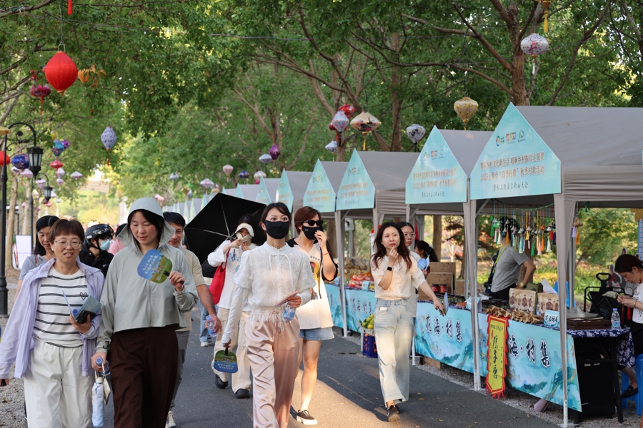 值得一提的是,本次活动不仅有好戏连台的“村晚”,还同步开设了“花海村集”。当天,30个特色摊位沿枫花路依次排开,集中展示金山农民画、朱泾花灯、土布染织等非遗手作,以及珠丰大米、良新葱油饼等本地优质农副产品,让市民游客在欣赏演出之余,也能沉浸式体验乡土文化,选购心仪好物。