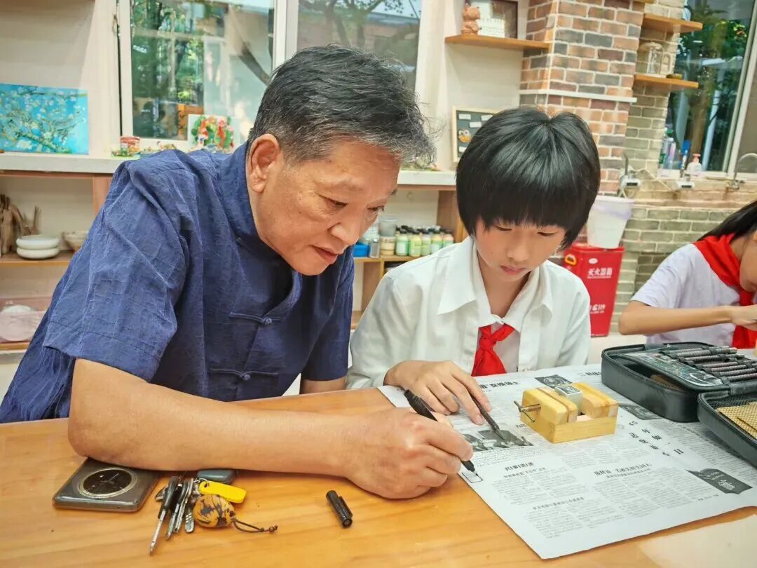 “让非遗走进校园,才能让传承更有未来。”秉持这一理念,刘恩同团队积极推进“非遗进校园”行动,与平利路第一小学携手开设石雕科普课程,让非遗教育实现常态化。考虑到小学生的认知特点,课程围绕“趣味化、生活化”原则精心设计,选用体积小巧、造型简单的“小顽石”作为雕刻材料。课堂上,孩子们亲手拿起工具,将普通石材雕琢成稚嫩却充满创意的文字、趣味图案,在实践中感受传统技艺的神奇,一颗颗热爱非遗的种子悄然萌芽。